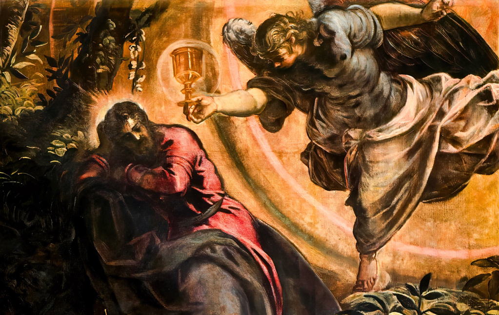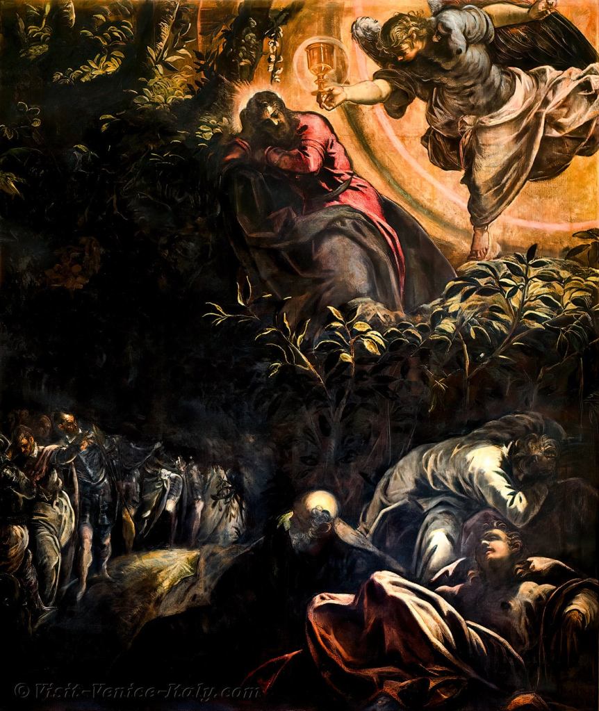 To właśnie tę chwilę uchwycił Tintoretto w swoim obrazie „Jezus modlący się w Ogrójcu”.
