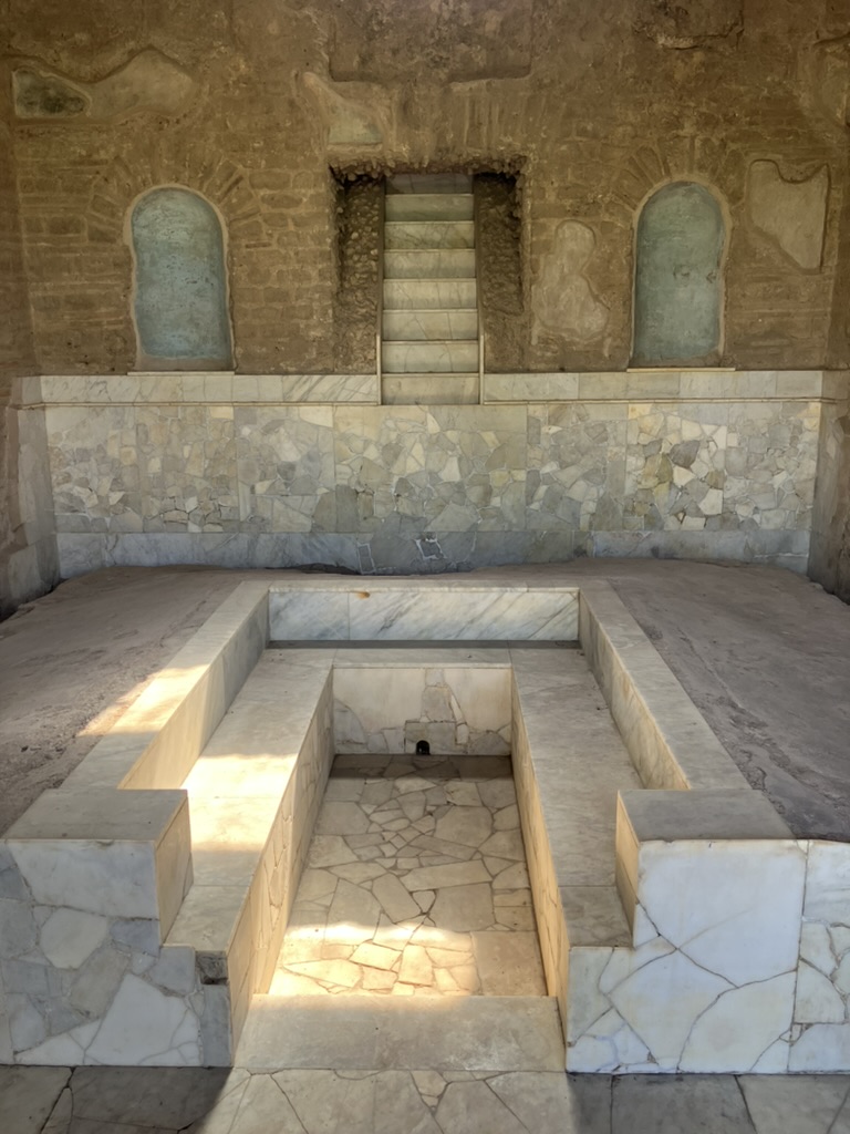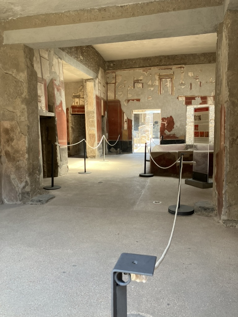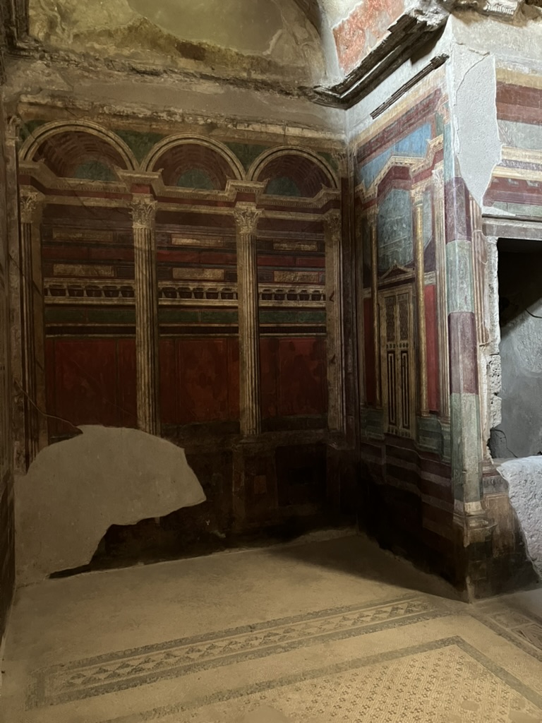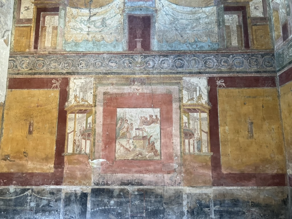 Nie sposób mówić o życiu w Pompejach, nie wspominając o jego willach, w tym o Villa dei Misteri. To luksusowa willa arystokracji, położona poza głównym obrębem miasta. Jej freski przedstawiają tajemnicze rytuały dionizyjskie – ich głęboka, czerwona barwa zdaje się pulsować życiem nawet dziś. Atrium, z wielkim basenem, było sercem domu, gdzie goście oczekiwali gospodarza. To dom, który opowiada o pełni bogactwa i zmysłowego życia starożytnych elit. Wiele fresków na ścianach pompejańskich willi pozostało w bardzo dobrym stanie, kolory przykryte popiołem utrzymały swoje żywe, intensywne barwy.