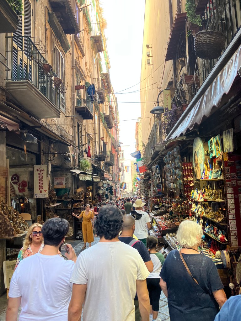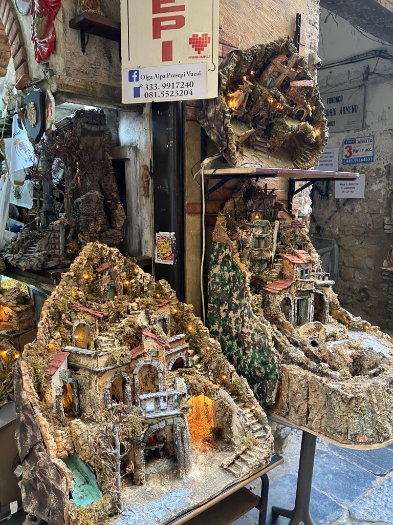 Jesteśmy w Neapolu, w samym sercu jego starego miasta. Wystarczy kilka kroków od gwarnego Spaccanapoli, by wejść na wąską ulicę, która wygląda jak scenografia teatralna. Via San Gregorio Armeno. Nad głowami wiszą girlandy świateł, z otwartych drzwi warsztatów dobiega zapach drewna, kleju i farby, a w witrynach – setki maleńkich postaci patrzą na nas szklanymi oczami.